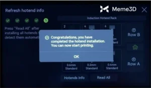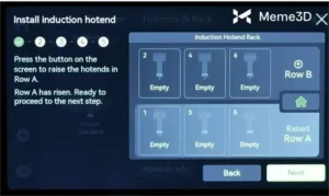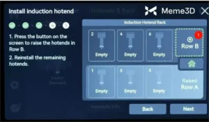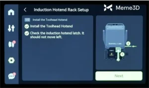 Sau khi hoàn tất hiệu chuẩn ban đầu, chúng ta sẽ lắp đặt các đầu gia nhiệt cảm ứng lên giá đỡ. Để thực hiện, hãy làm theo các bước sau. Nhấn vào “Lắp đặt đầu gia nhiệt” để bắt đầu.
