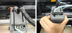 Nhấn cần gạt cắt dây filament để đảm bảo có thể tháo rời đầu phun nhiệt.