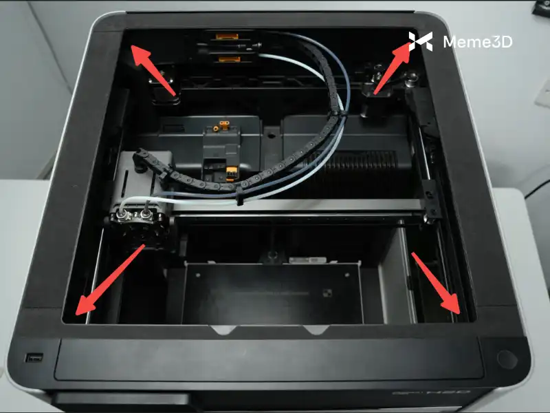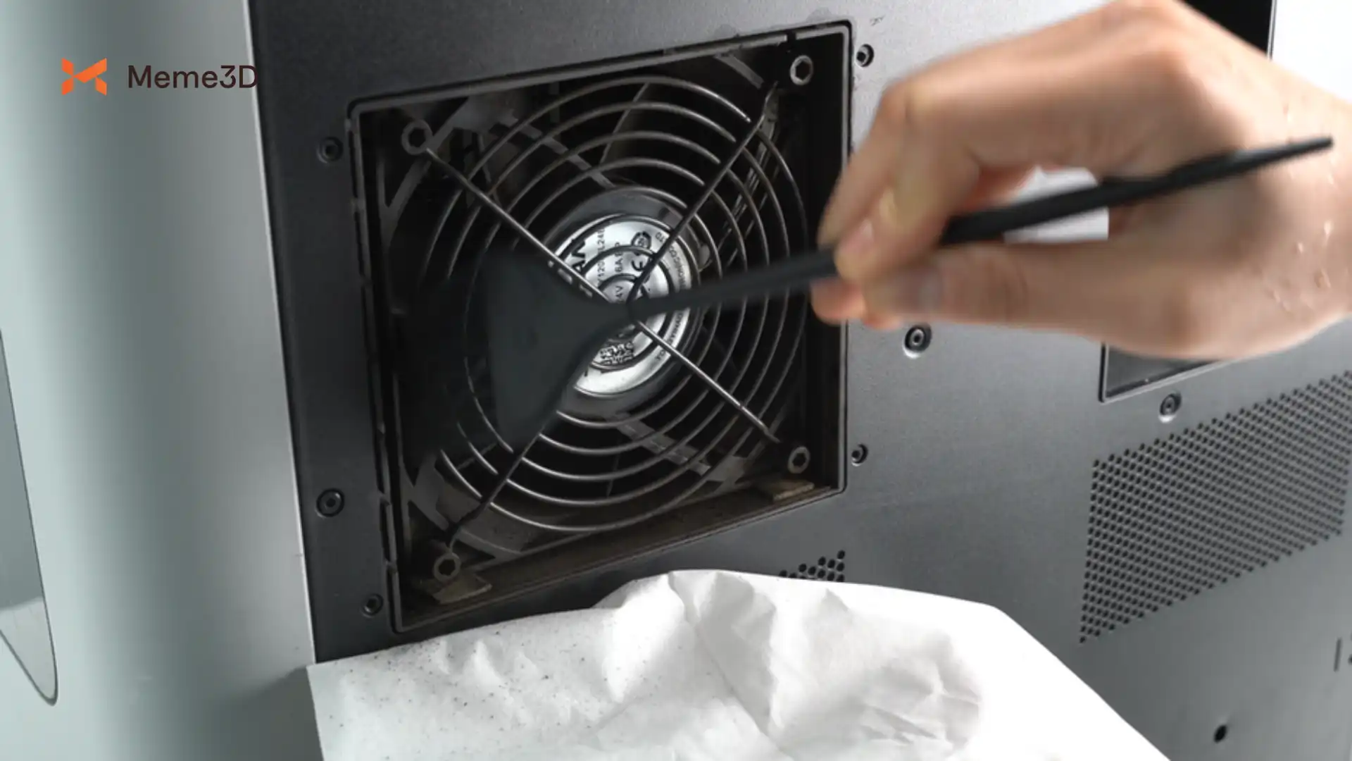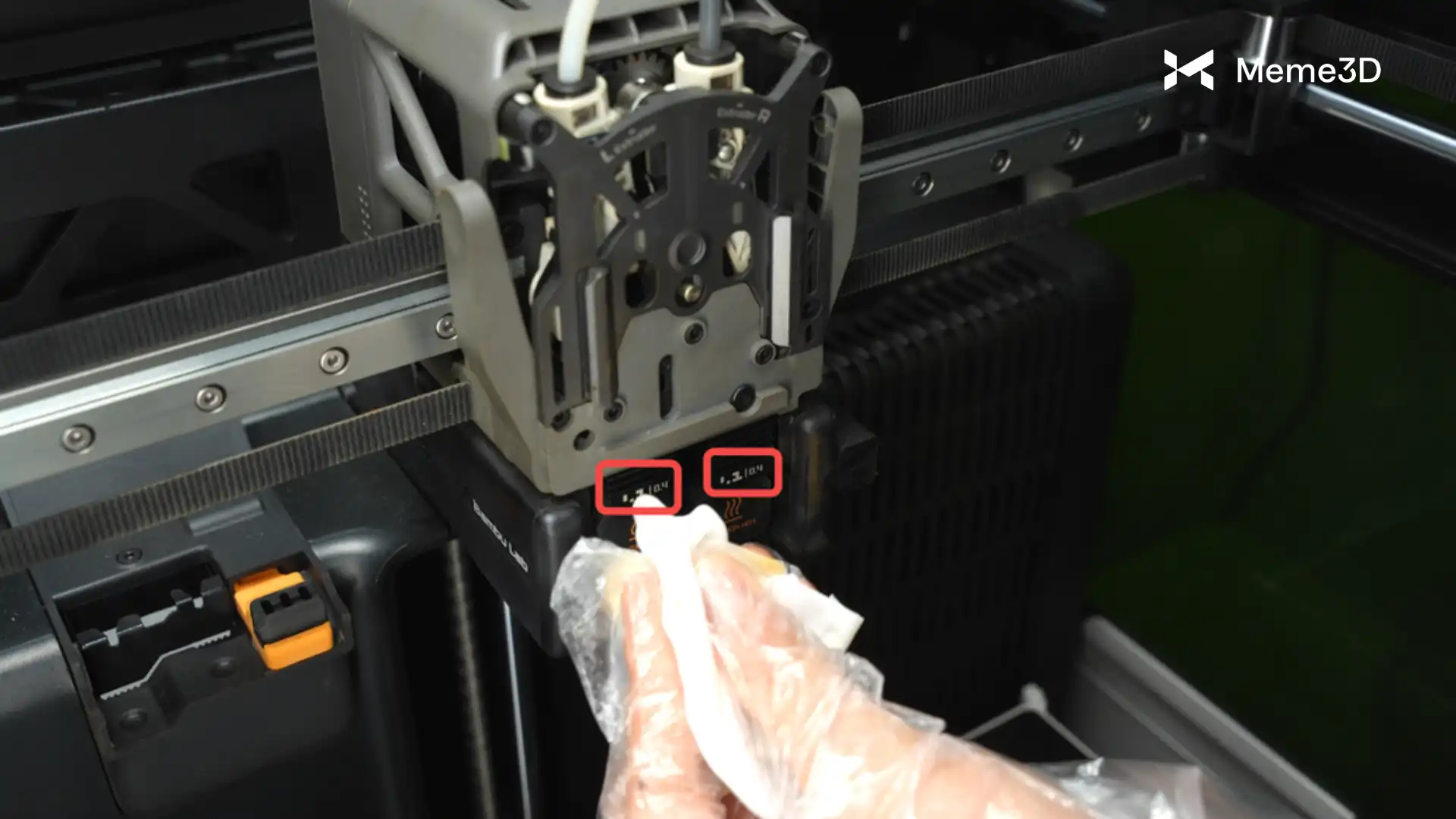 Việc bảo dưỡng đầu in thường xuyên rất quan trọng, vì bộ đùn, vòi phun và quạt làm mát đầu in có thể tích tụ sợi nhựa và mảnh vụn theo thời gian. Để bắt đầu vệ sinh, hãy bắt đầu làm sạch từ ống dẫn khí của quạt làm mát chi tiết, sau đó tập trung vào việc làm sạch các vạch đánh dấu trên cả hai đầu in để đảm bảo chúng vẫn nhìn thấy rõ. Đồng thời, lau sạch các lớp bọc silicon của đầu in.