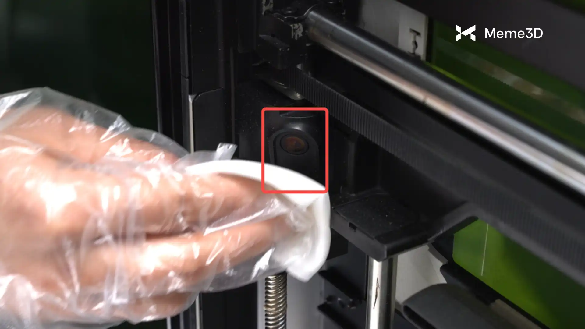 Theo thời gian, ống kính máy ảnh có thể bị mờ do tích tụ bụi bẩn. Điều này thường xảy ra nhiều hơn khi in bằng sợi ABS hoặc ASA. Nên vệ sinh ống kính cùng lúc với việc vệ sinh thanh carbon, bằng cách lau ống kính bằng cồn isopropyl (IPA) và một miếng vải sạch.