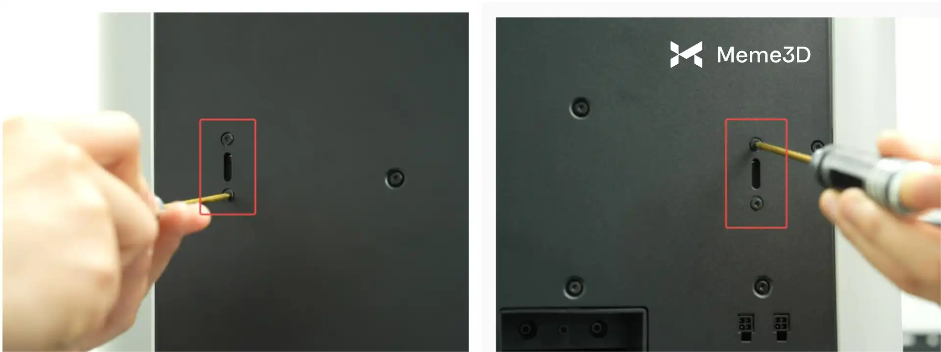 Thực hiện thao tác này cho cả ba trục vít dẫn hướng, sau đó di chuyển bàn nhiệt xuống đáy máy in và lặp lại thao tác cho phần trên cùng của ba trục vít dẫn hướng.