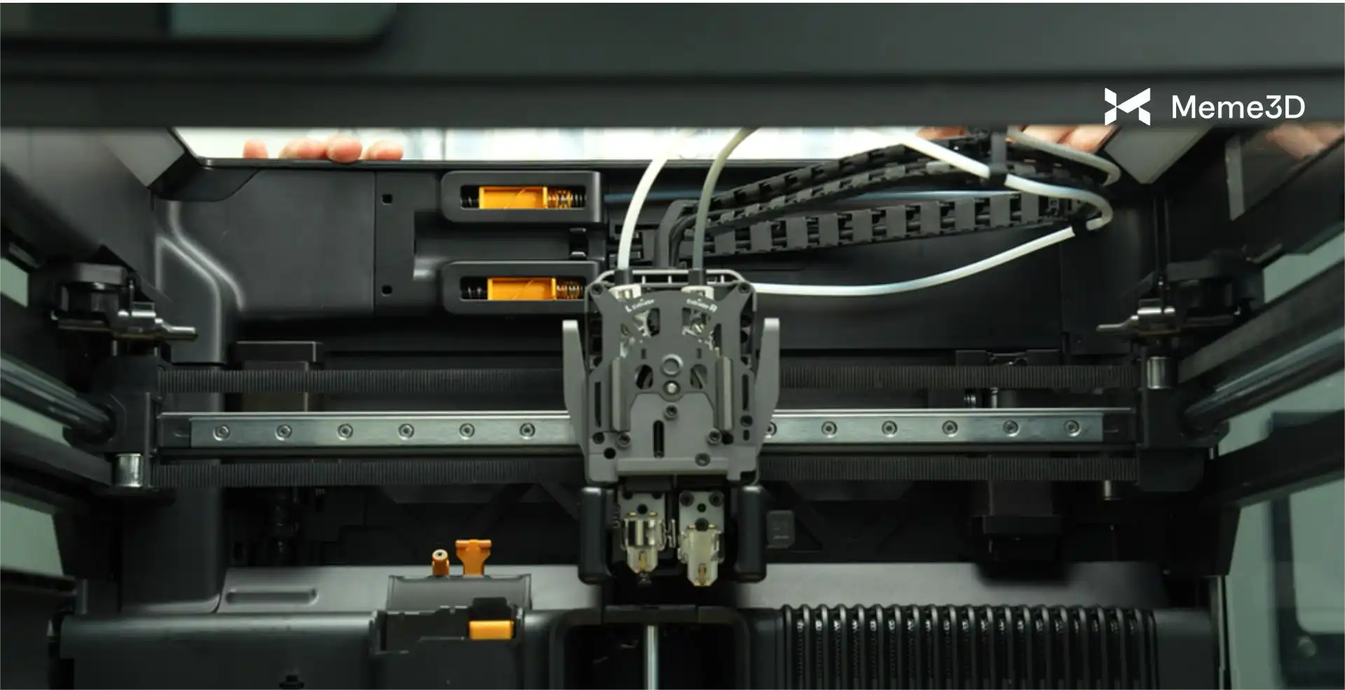 Máy in 3D Bambu Lab H2D sử dụng ray dẫn hướng tuyến tính cho hệ thống chuyển động trục X. Ray dẫn hướng này nhẹ, cứng cáp và được kết hợp với các ổ bi ma sát thấp nằm trong đầu in, giúp loại bỏ phần lớn ma sát giữa đầu in và ray dẫn hướng, cho phép đầu in di chuyển rất nhanh và chính xác.