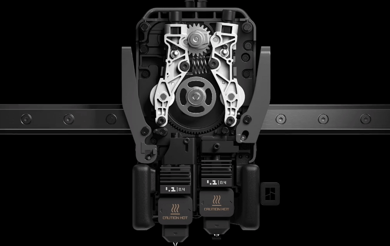 Ngoài thể tích in lớn hơn so với các máy in Bambu Lab đã ra mắt trước đây, H2D rất giống với các máy khác ở chỗ nó chỉ in bằng một vòi phun tại một thời điểm . Tuy nhiên, nó cũng có hai vòi phun riêng biệt với hai đường dẫn sợi riêng biệt, nghĩa là nó có thể chuyển đổi giữa hai vòi phun này.