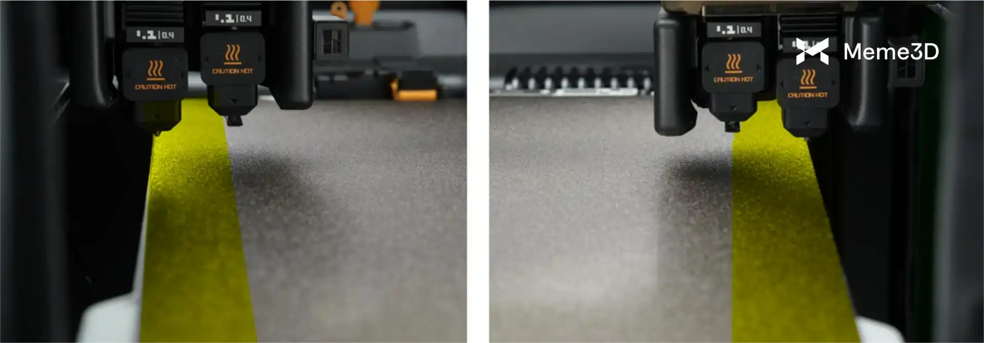 Khi vòi phun bên trái đang in, nó ở vị trí thấp và nằm dưới vòi phun bên phải. Khi vòi phun bên phải đang in, vòi phun bên trái ở vị trí cao và nằm trên vòi phun bên phải. Ngoài việc đảm bảo vòi phun không in không gây cản trở, điều này còn cho phép bộ phận chặn dòng chảy của vòi phun di chuyển vào đúng vị trí để ngăn sợi nhựa bị tràn hoặc rò rỉ vào khu vực in.