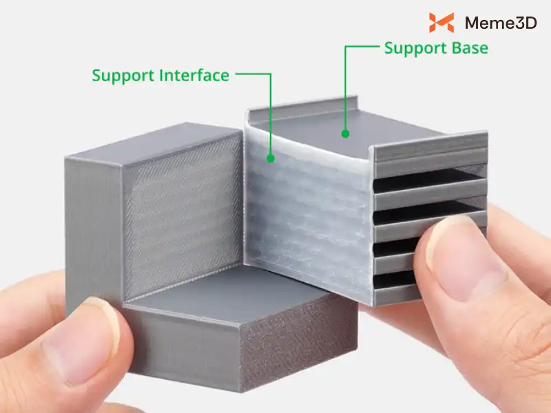 Một ví dụ điển hình cho vấn đề này là khi sử dụng sợi nhựa hỗ trợ riêng biệt cho một chi tiết được in bằng vật liệu khác. Sợi nhựa hỗ trợ rất hữu ích trong việc giúp loại bỏ phần hỗ trợ dễ dàng hơn và tạo ra bề mặt hoàn thiện mịn màng hơn.
