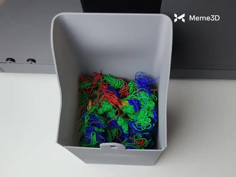 Máy in 3D của Bambu Lab có thể được trang bị bộ phận AMS để cho phép in nhiều màu (nhiều chất liệu) bằng cách kiểm soát loại sợi nào được đưa vào vòi phun tại một thời điểm nhất định. Điều này bao gồm việc cắt và rút sợi cũ, sau đó thay thế bằng sợi mới. Vì vậy, một phần sợi cũ vẫn còn nóng chảy trong vòi phun, nên sợi mới được sử dụng để làm sạch vòi phun, đảm bảo chỉ có màu mới tinh khiết được in lên sản phẩm.