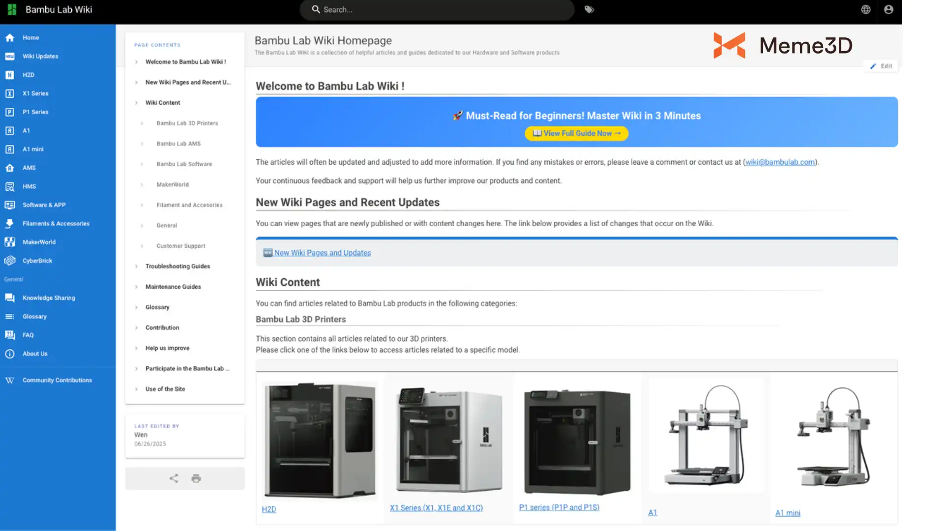 Có sẵn hướng dẫn chi tiết về cách sử dụng Wiki của Bambu Lab, giải thích từng tính năng.
