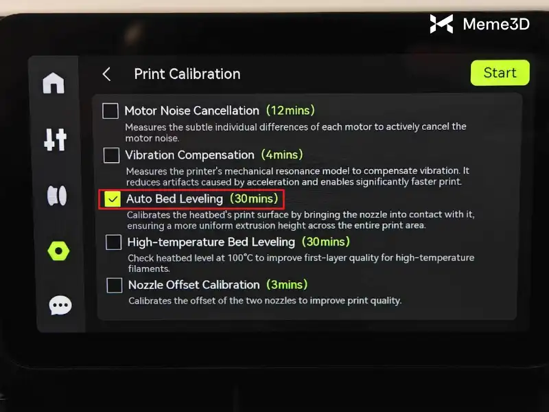 Giờ đây, khi bàn nhiệt đã được căn chỉnh vật lý, bạn có thể hoàn tất thao tác bằng cách bắt đầu quy trình cân bằng bàn in tự động.