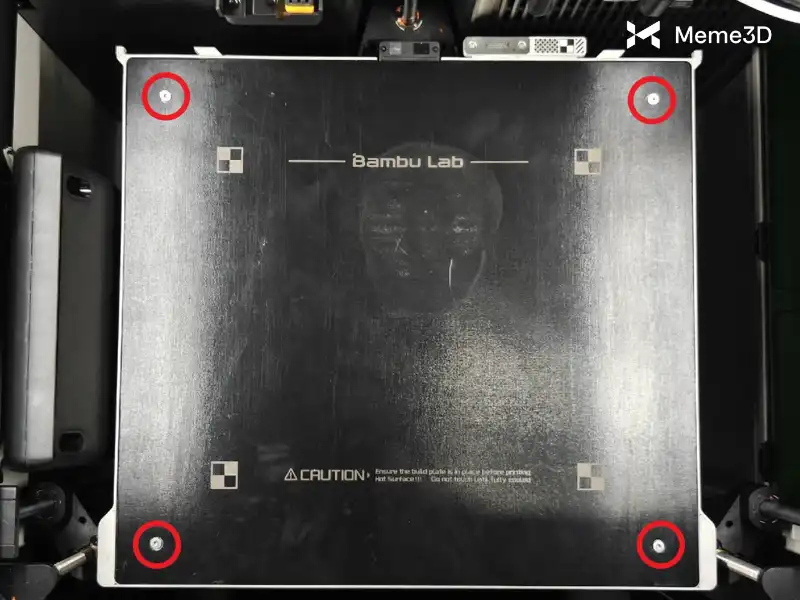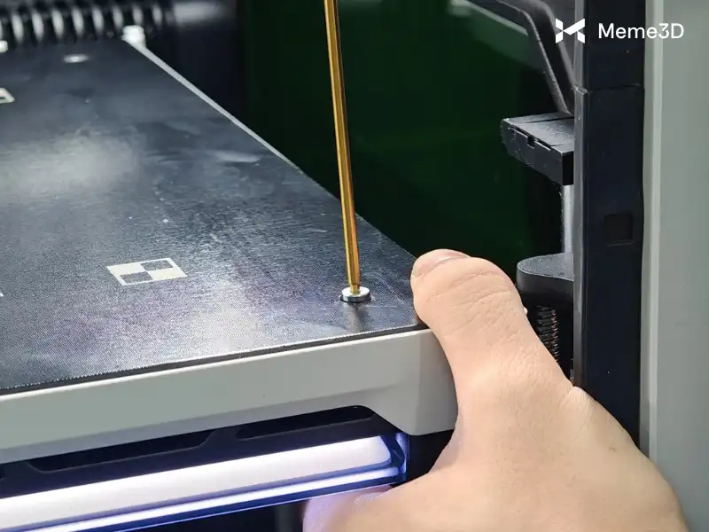 Sau khi nới lỏng các ốc vít cố định bàn nhiệt, hãy ấn vào từng góc của giường để kiểm tra xem có bị bật trở lại hay không. Nếu các góc bật trở lại bình thường, điều đó cho thấy các ốc vít đã được nới lỏng thành công.