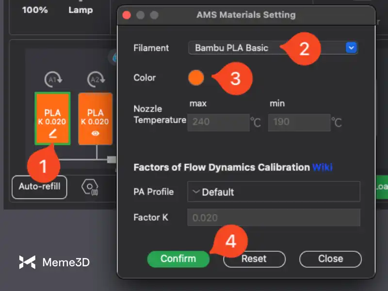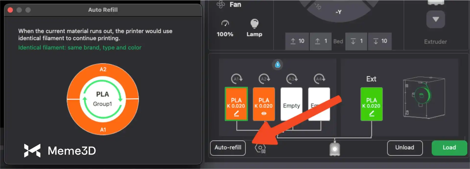 Để sử dụng tính năng này, trước tiên hãy nạp hai cuộn dây in giống hệt nhau vào AMS ở hai khe đầu tiên của thiết bị.