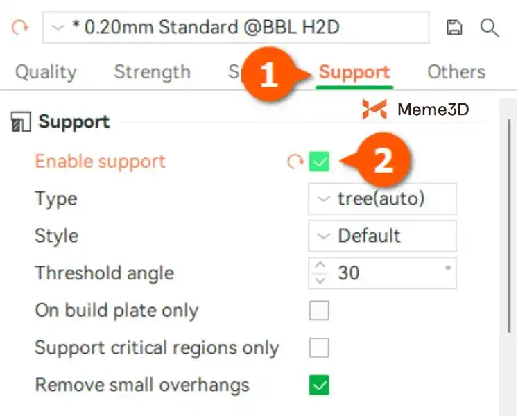 Khi bật tính năng này, Bambu Studio sẽ phát hiện tất cả các phần nhô ra của mô hình và tạo giá đỡ cho chúng.