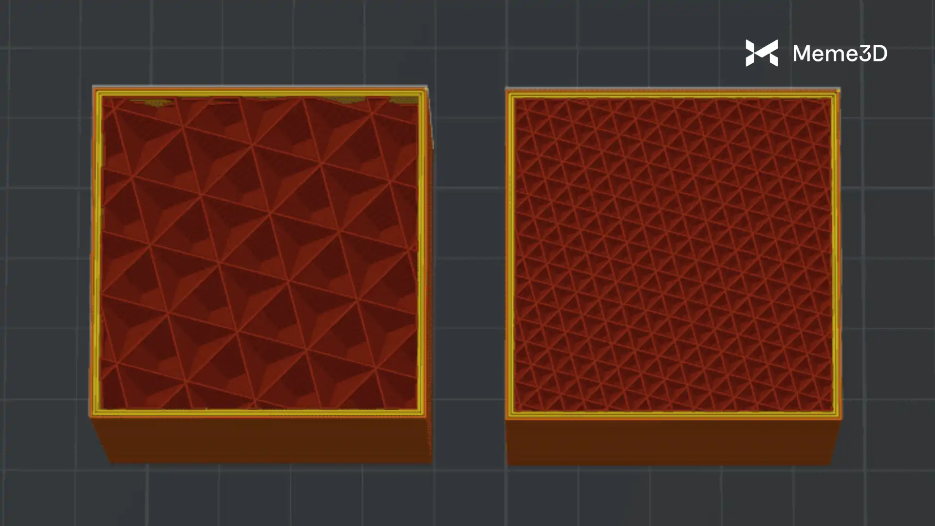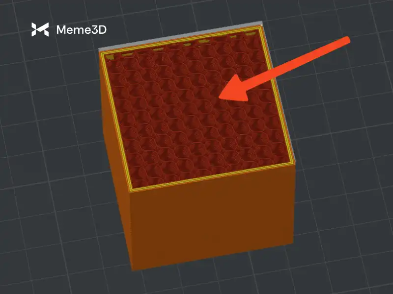 Các lớp vỏ này tạo ra một bề mặt nhẵn, kín trên chi tiết, góp phần vào vẻ ngoài thẩm mỹ và độ bền cấu trúc. Lớp vỏ dưới cung cấp một nền tảng vững chắc, đảm bảo độ bám dính tốt với bàn in, trong khi lớp vỏ trên bịt kín phần bên trong, phân bổ tải trọng đồng đều hơn trên bề mặt và ngăn ngừa sự sụp đổ dưới áp lực.