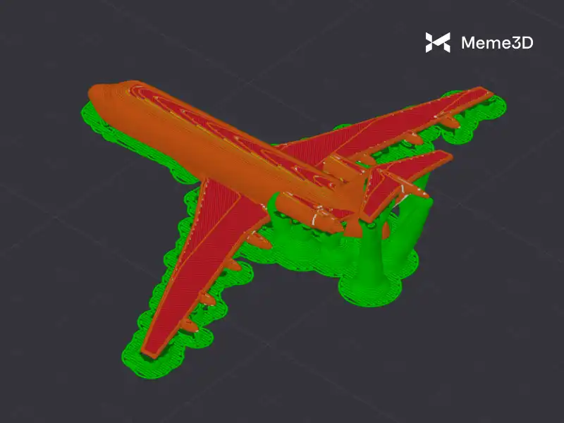 Nên sơn vật liệu hỗ trợ cho các phần sẽ được in lơ lửng giữa không trung hoặc cho các phần nhô ra có góc lớn hơn 45-50 độ.