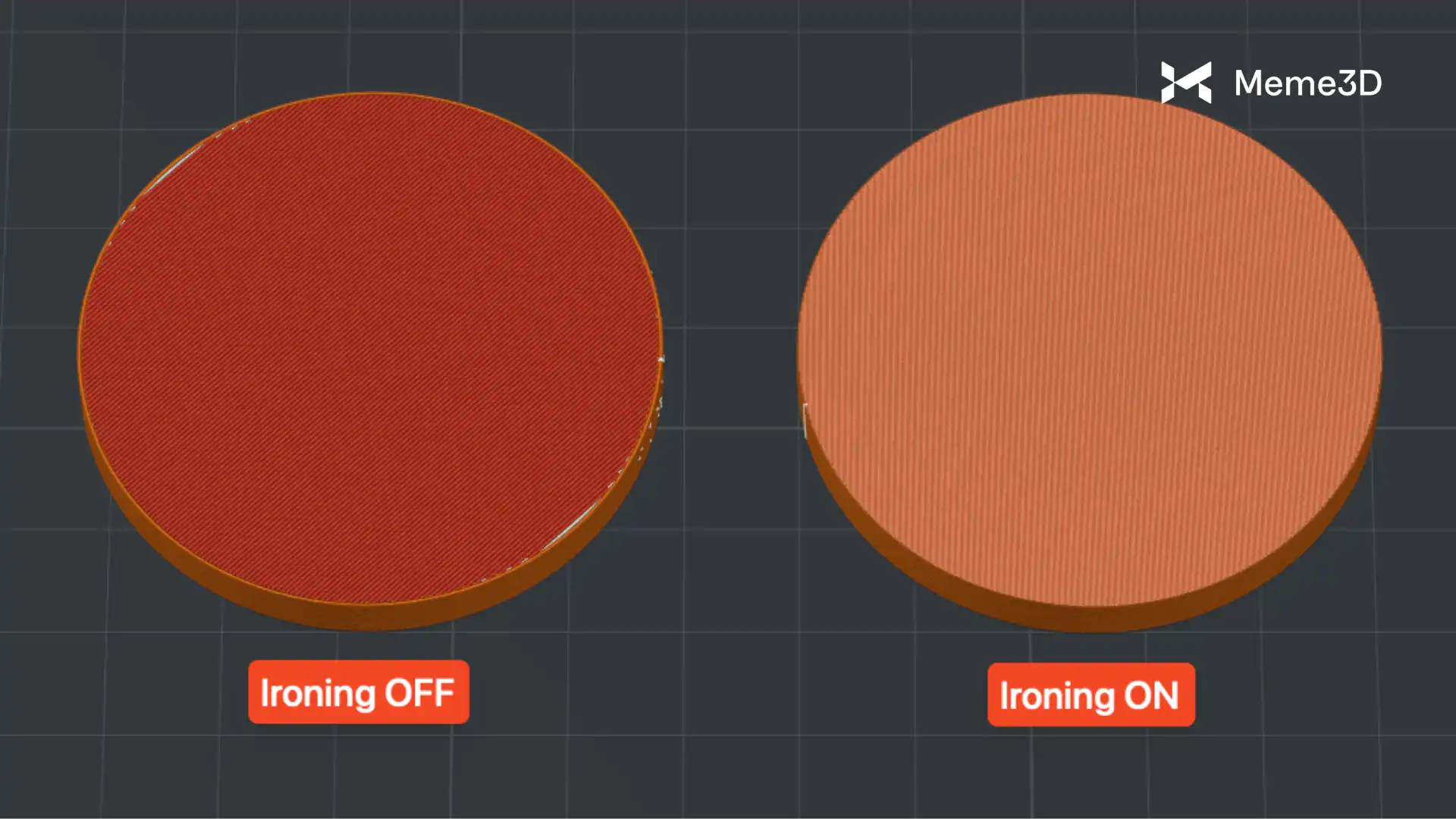 Ủi tạo ra bề mặt phẳng, bóng loáng và rất tốt cho các bộ phận trang trí hoặc các bề mặt chức năng cần tiếp xúc trơn tru, nhưng nó cũng làm tăng thời gian in và có thể không hiệu quả với một số loại sợi in (như sợi dẻo hoặc sợi dính).