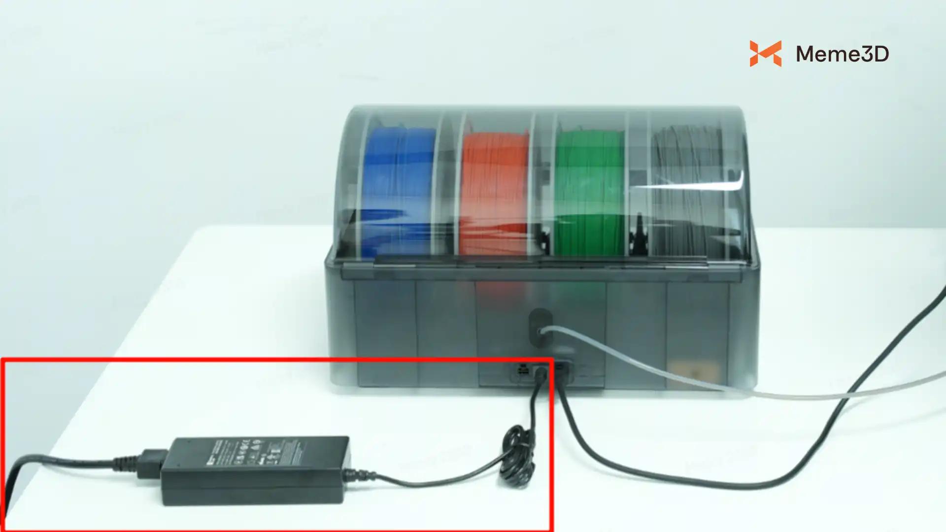 Mỗi máy AMS HT phải luôn được cấp nguồn bằng cáp nguồn đi kèm vì tính năng sấy sợi đốt của nó không được cấp nguồn bởi H2D.