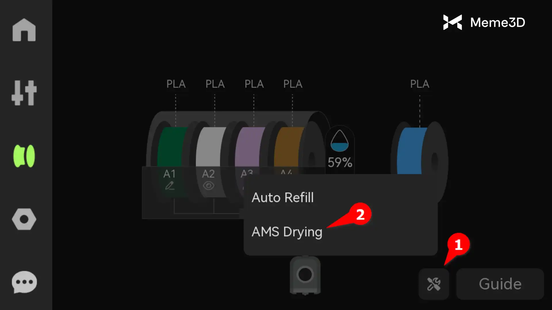 Hãy làm theo các bước bên dưới để sử dụng AMS 2 Pro hoặc AMS HT để sấy khô sợi in 3D với H2D.