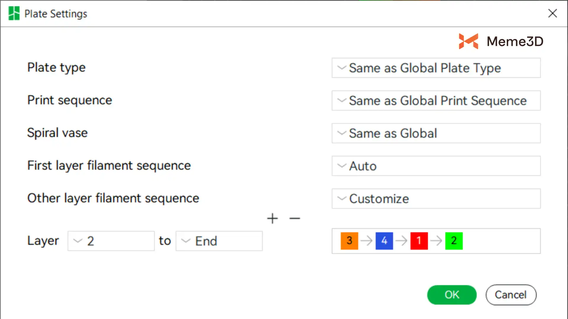 Dựa trên nguyên tắc trên, phần mềm cắt lớp sẽ tính toán trình tự in tối ưu căn cứ vào lưu lượng xả giữa các sợi nhựa nhằm giảm thiểu lượng nhựa lãng phí. Ví dụ, nếu tổng lượng nhựa xả của trình tự in 1>2>3>4 lớn hơn so với trình tự 3>4>1>2, thì trình tự sau sẽ có xu hướng được chọn làm trình tự in chính thức. Để biết thêm thông tin chi tiết về việc điều chỉnh trình tự in thủ công, vui lòng tham khảo bài viết wiki: Thiết lập trình tự in nhựa cho các lớp khác nhau.