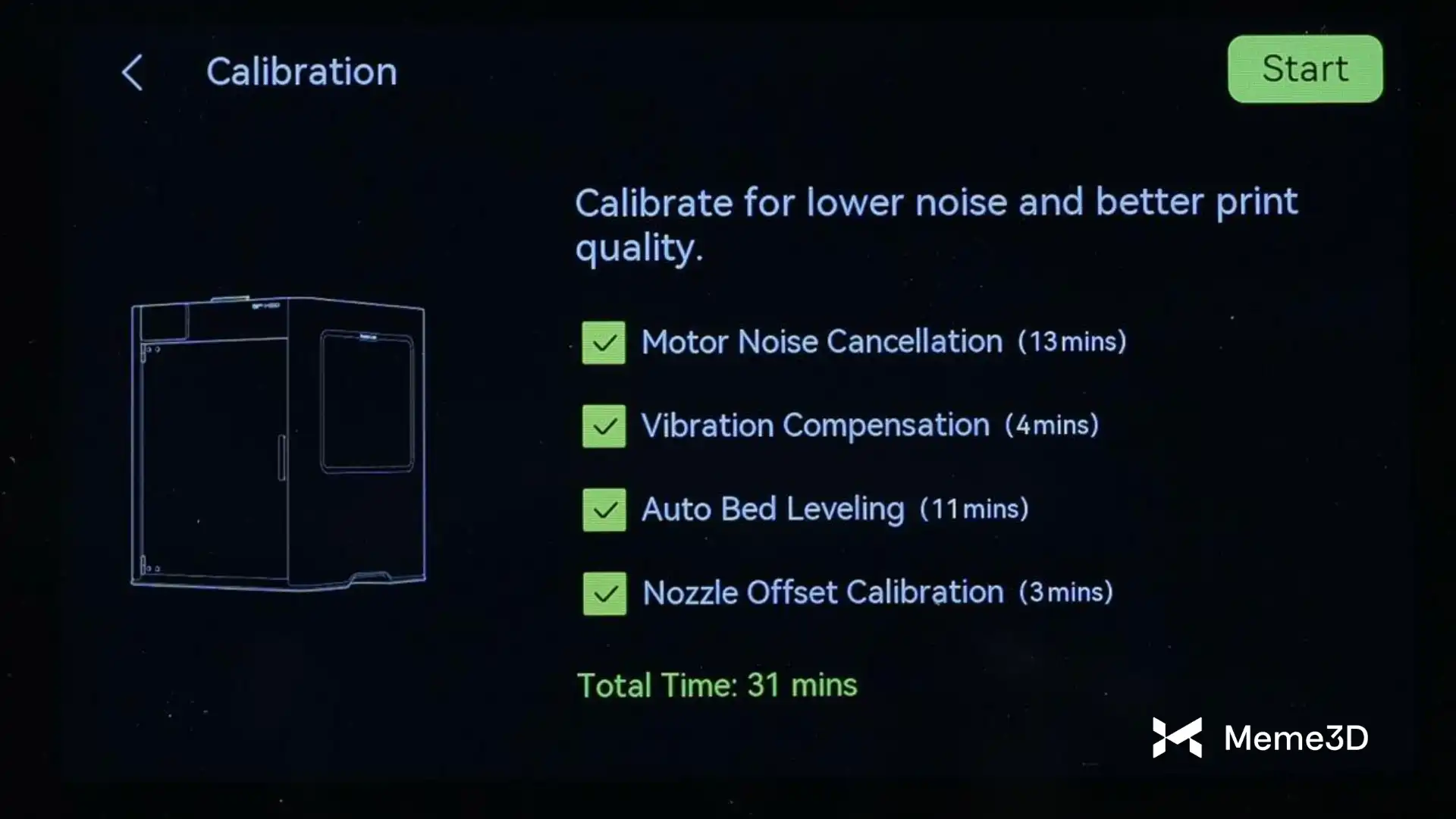 Máy in sẽ bắt đầu quy trình hiệu chỉnh tự động và chúng tôi đặc biệt khuyến nghị bạn nên bật tất cả các tùy chọn nếu đây là lần đầu tiên bạn thiết lập máy in.