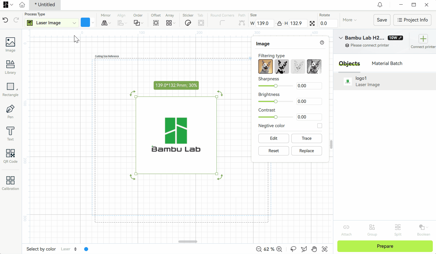 Trace chuyển đổi hình ảnh được nhập vào thành các đường viền vector rõ nét. Quá trình này phát hiện hình dạng và các cạnh của hình ảnh và biến đổi chúng thành các đường dẫn có thể được cắt hoặc vẽ.