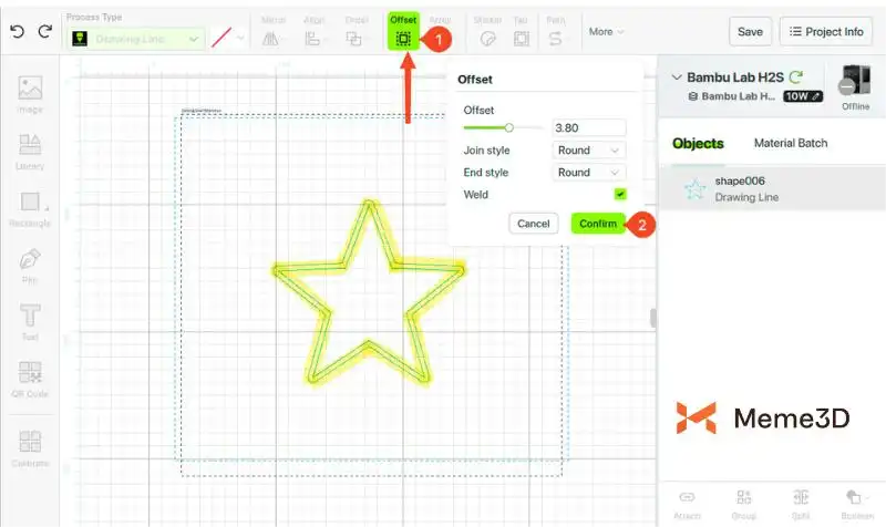 Chức năng Offset tạo ra một bản sao của đường viền thiết kế của bạn, lớn hơn hoặc nhỏ hơn một chút so với bản gốc. Nó giống như việc tạo bóng hoặc đường viền xung quanh hình dạng của bạn. Điều này hữu ích cho nhãn dán, lớp phủ hoặc bóng đổ.