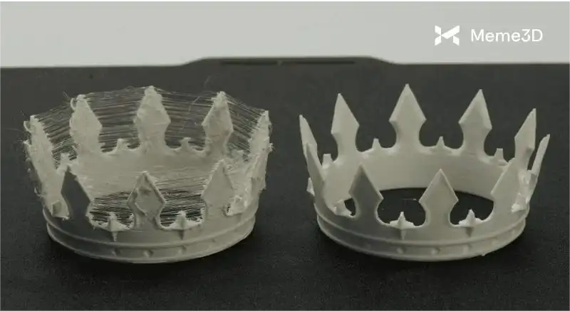 Các nguyên nhân khác gây ra hiện tượng kéo sợi có thể liên quan đến cài đặt rút dây không phù hợp, nhiệt độ vòi phun quá cao hoặc làm mát không đầy đủ, và có thể làm giảm chất lượng và vẻ ngoài tổng thể của vật thể được in.