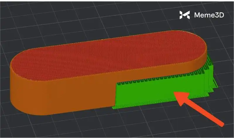 Các phần tử tạm thời được thêm vào trong quá trình cắt lát giúp hỗ trợ các chi tiết nhô ra của mô hình mà nếu không có chúng thì không thể in được. Chúng đặc biệt quan trọng đối với các phần nhô ra hoặc cầu nối , nơi các lớp vật liệu cần được xếp chồng lên nhau mà không bị sụp đổ do trọng lực.