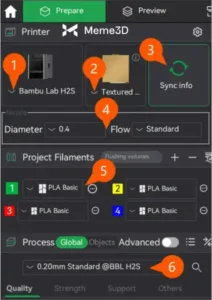 Các thông số quan trọng nhất bạn cần chỉ định trong Bambu Studio được hiển thị trong hình ảnh bên dưới: