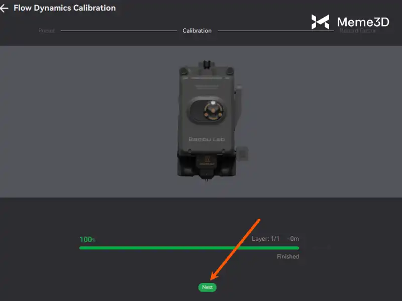 Sau khi đã xác định được giá trị chính xác, trong Bambu Studio, hãy nhấp vào Tiếp theo.