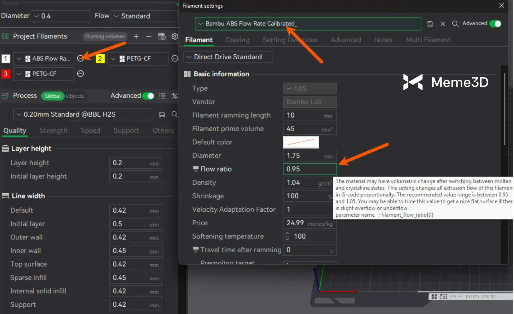- Chuyển sang loại hoặc thương hiệu sợi in mới : Hệ thống điều chỉnh lưu lượng tự động H2S hoạt động tốt với sợi in Bambu Lab khi sử dụng các cấu hình được thiết lập sẵn trong Bambu Studio. Tuy nhiên, sợi in của bên thứ ba có thể có các đặc tính khác nhau (ví dụ: đường kính, độ nhớt), và việc hiệu chỉnh tốc độ dòng chảy đảm bảo quá trình đùn sợi diễn ra nhất quán. Có thể cần tinh chỉnh thủ công để đạt được kết quả tối ưu với các loại sợi in không phải của Bambu, đặc biệt là đối với các bản in chính xác.