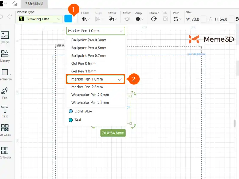 Tiếp theo, chọn Bút đánh dấu 1.0 mm ở phần bên phải của Đường vẽ.