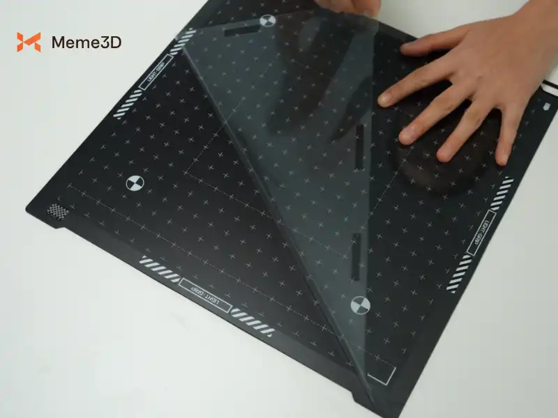 Chọn đúng mặt của tấm lót (LightGrip hoặc StrongGrip) và chỉ bóc lớp màng bảo vệ ở mặt dính phía trên, để nguyên mặt tiếp xúc với bàn nhiệt. Giữ lại lớp màng bảo vệ này, vì bạn sẽ cần nó để che tấm lót khi không sử dụng nhằm kéo dài tuổi thọ và ngăn bụi gây ra lỗi khi cắt.