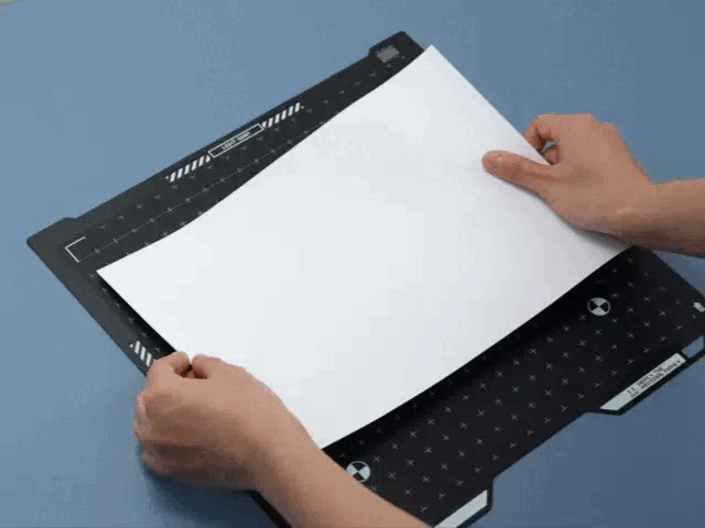 Đặt giấy hoặc vật liệu của bạn lên tấm lót và ấn phẳng bằng con lăn sao cho mép giấy chạm mép giấy, tránh tạo bọt khí hoặc các đường kẻ mờ.