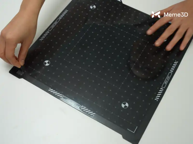 Cuối cùng, đặt tấm cắt lên bàn gia nhiệt và căn chỉnh sao cho khớp chắc chắn với các khối định vị.
