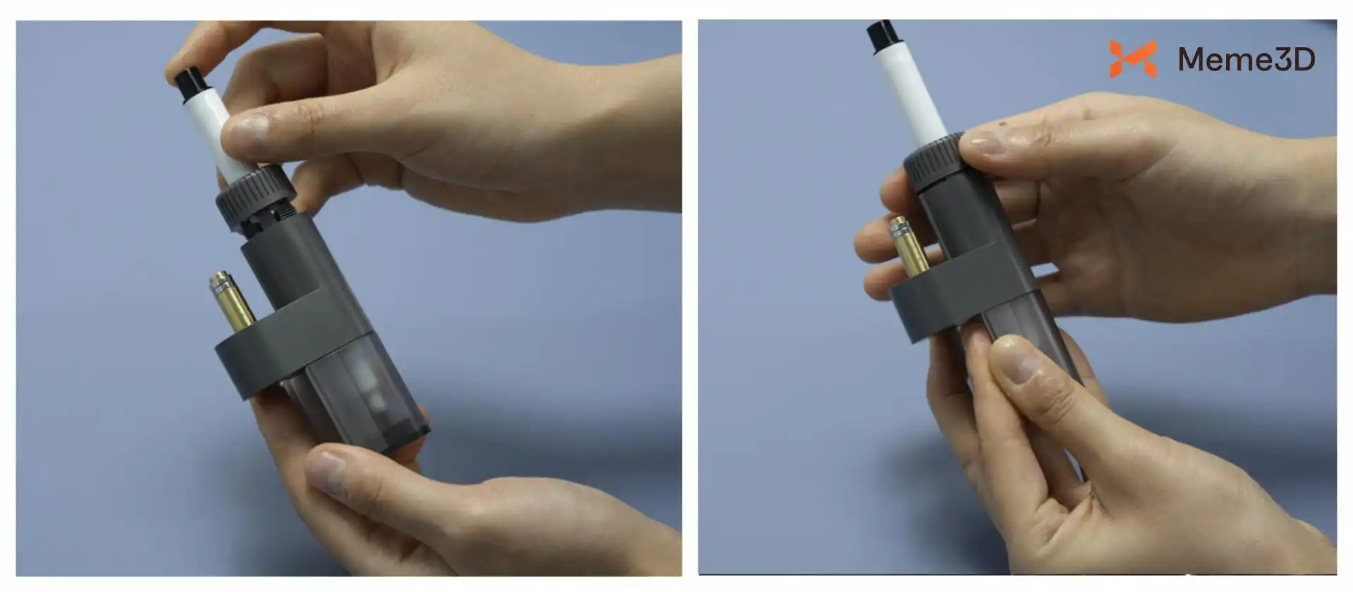 Gắn khối điều chỉnh độ cao vào đáy của bộ chuyển đổi bút. Khối nhựa này điều chỉnh độ cao theo trục Z của bút để nó nằm ở vị trí chính xác khi sử dụng. Khi khối điều chỉnh được đặt đúng vị trí, bộ chuyển đổi sẽ giữ cho bút ổn định và thẳng hàng trong quá trình vẽ.