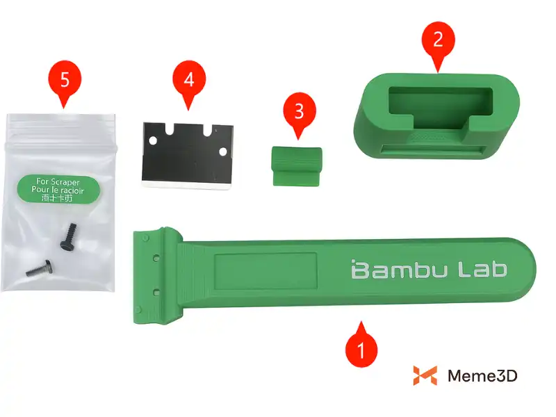 Sau khi in xong, bạn có thể lắp ráp các bộ phận của bộ dụng cụ cạo. Để làm điều này, bạn cần sử dụng bộ dụng cụ cạo Bambu được cung cấp trong hộp phụ kiện của máy cùng với 2 ốc vít tự ren M2.6×6.