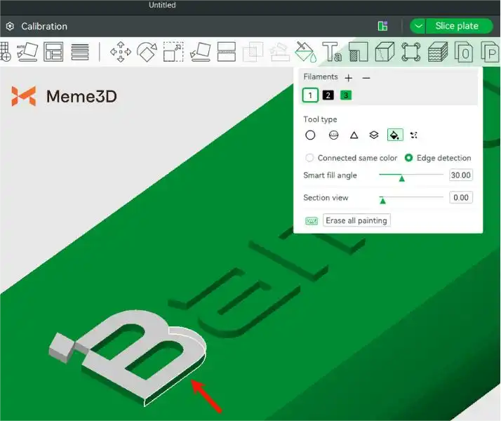 Nếu cần, bạn có thể tinh chỉnh khả năng phát hiện này bằng thanh trượt Smart Fill Angle, thanh trượt này kiểm soát lượng hình học được tô màu dựa trên các góc giữa các mặt của mô hình.