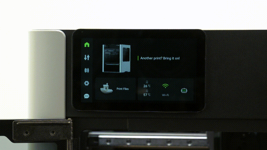 Máy in sẽ tự động đẩy hết vật liệu cũ ra ngoài. Sau khi đẩy hết vật liệu, nhiệt độ sẽ giảm xuống mức cài đặt kéo nguội, và đầu phun sẽ từ từ rút sợi nhựa để làm sạch vòi phun.