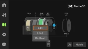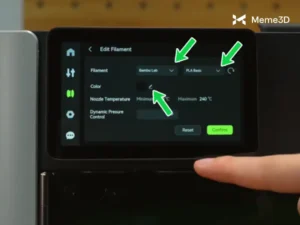 Nếu bạn sử dụng sợi in của bên thứ ba, bạn sẽ cần phải cấu hình thủ công các cài đặt sợi in trên màn hình cảm ứng. Điều này đảm bảo máy in nhận diện đúng các đặc tính của vật liệu và có thể điều chỉnh các thông số in cho phù hợp.