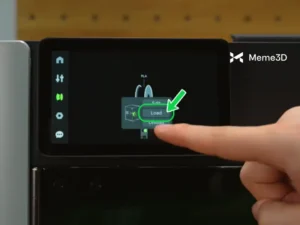 - Sau khi thiết lập chính xác, hãy xác nhận trên màn hình cảm ứng. Cuối cùng, chạm vào nút Nạp . Máy in sẽ làm nóng vòi phun và tự động kéo sợi nhựa vào bộ đùn.
