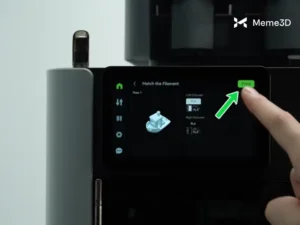 Lúc này, bạn sẽ biết sợi nhựa đã đến đúng vị trí khi biểu tượng đầu phun trên màn hình cảm ứng sáng màu xanh lá cây. Chỉ báo này xác nhận rằng sợi nhựa đã được cố định chắc chắn và sẵn sàng sử dụng.