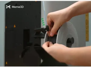 - Bắt đầu bằng cách đặt cuộn dây nhựa lên giá đỡ bên ngoài. Luồn dây nhựa qua ống PTFE và cẩn thận đưa vào cửa nạp ở phía sau máy in. Đẩy dây nhựa về phía trước cho đến khi bạn cảm thấy lực cản. Điều này có nghĩa là dây nhựa đã đến bộ đùn. Hãy đảm bảo cuộn dây quay trơn tru để dây nhựa được kéo ra mà không bị rối.
