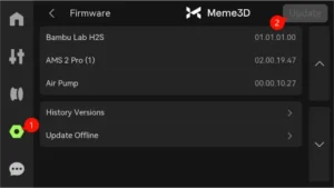 Để đạt hiệu suất tốt nhất, hãy đảm bảo rằng phần mềm H2S đã được cập nhật đầy đủ trước khi kết nối AMS 2 Pro hoặc AMS HT. Bạn có thể xem và cập nhật phiên bản phần mềm trong tab Cài đặt. Nếu có bản cập nhật, nút Cập nhật sẽ hoạt động ở góc trên bên phải. Điều này sẽ đảm bảo bạn được hưởng lợi từ bất kỳ tính năng bổ sung nào mà chúng tôi sẽ thêm vào theo thời gian.