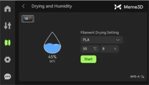 Một trong những nguyên nhân phổ biến nhất gây ra các vấn đề về chất lượng in là do sợi in hấp thụ hơi ẩm từ không khí. Vì chúng ta có thể khắc phục hiện tượng hấp thụ này bằng cách làm nóng và sấy khô cuộn sợi in, nên AMS 2 Pro và AMS HT được bán theo gói kết hợp H2S hoặc riêng lẻ, và có khả năng sấy khô sợi in cũng như thay đổi vật liệu.