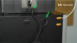 Tiếp theo, kết nối một đầu của cáp Bambu Bus 6 chân vào một trong hai cổng 6 chân trên AMS 2 Pro hoặc AMS HT, và đầu còn lại vào cổng tương ứng ở mặt sau của máy in.