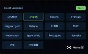 Sau khi đặt máy in vào vị trí cuối cùng, bạn có thể khởi động máy và bắt đầu thiết lập ban đầu. Màn hình đầu tiên sẽ yêu cầu bạn chọn ngôn ngữ giao diện người dùng.
