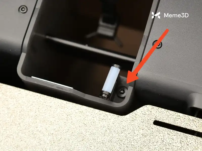 Thực hiện thao tác này cho cả ba trục vít dẫn hướng, sau đó di chuyển bàn nhiệt xuống đáy máy in và lặp lại thao tác cho phần trên cùng của ba trục vít dẫn hướng.