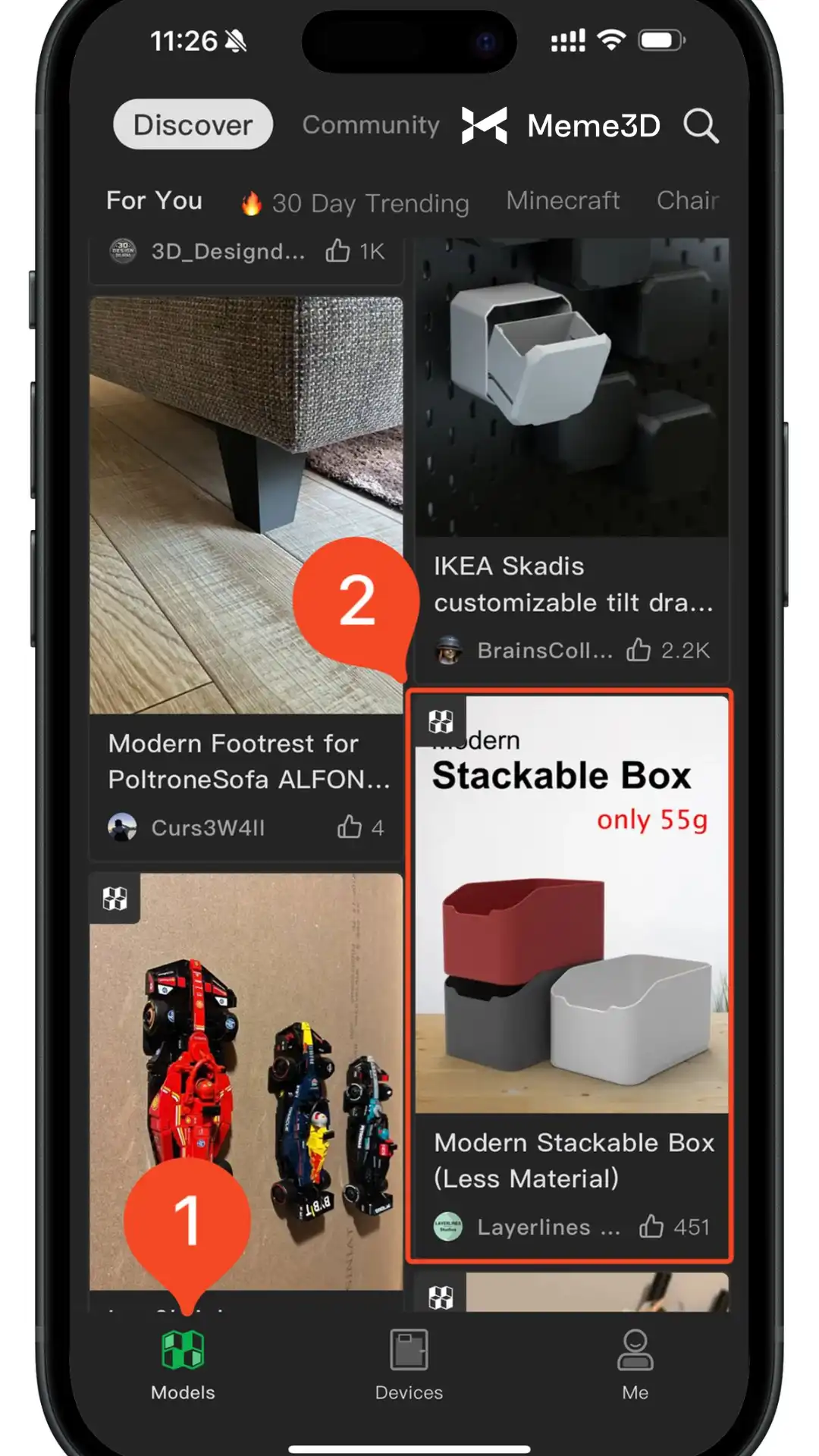 Bắt đầu thật dễ dàng! Chỉ cần mở ứng dụng Bambu Handy và điều hướng đến tab Mô hình để khám phá và in một cách dễ dàng. Khi bạn tìm thấy một mô hình mình thích, chỉ cần chạm vào nó.