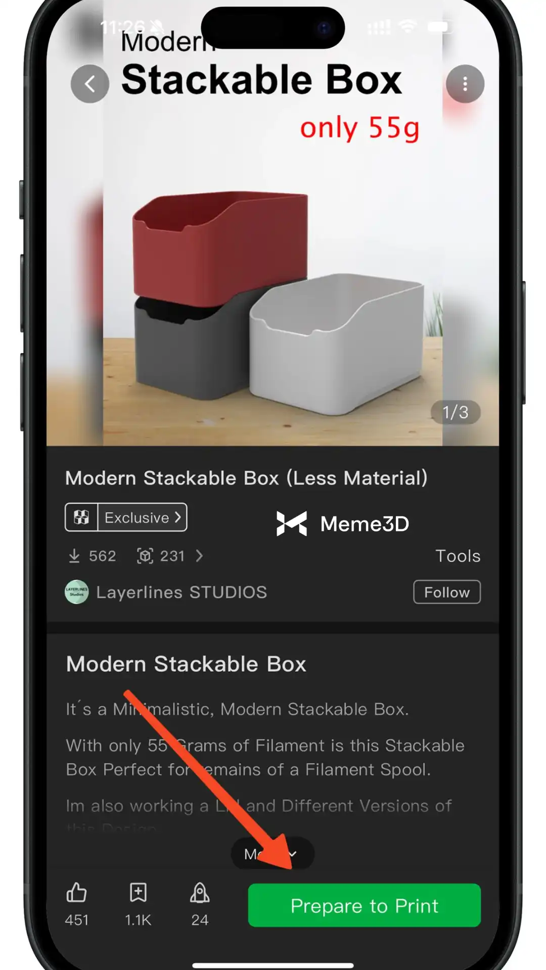 Bạn sẽ được chuyển đến trang của mô hình, nơi bạn có thể tìm thấy thông tin chi tiết, bao gồm các khuyến nghị về cách in, loại sợi in được đề xuất và các mẹo hữu ích khác để đảm bảo bản in thành công. Khi đã sẵn sàng, chỉ cần nhấn nút Chuẩn bị in.