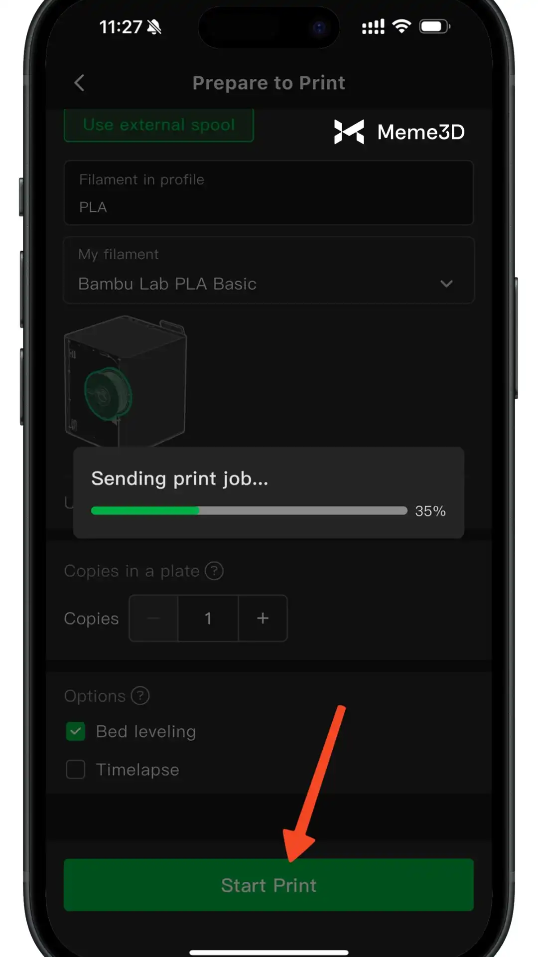Vậy là xong! Dễ dàng phải không? Giờ chỉ cần nhấn nút Bắt đầu in . Ứng dụng Handy sẽ gửi mô hình không dây đến máy in.