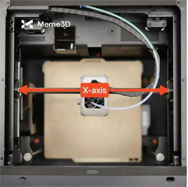 Máy in 3D P1S sử dụng một cặp thanh sợi carbon để chuyển động theo trục X , tạo ra một hệ thống chuyển động nhẹ, bền và ma sát thấp . Đầu in di chuyển dọc theo các thanh này nhờ các bạc lót kim loại, đảm bảo hoạt động trơn tru và chính xác.